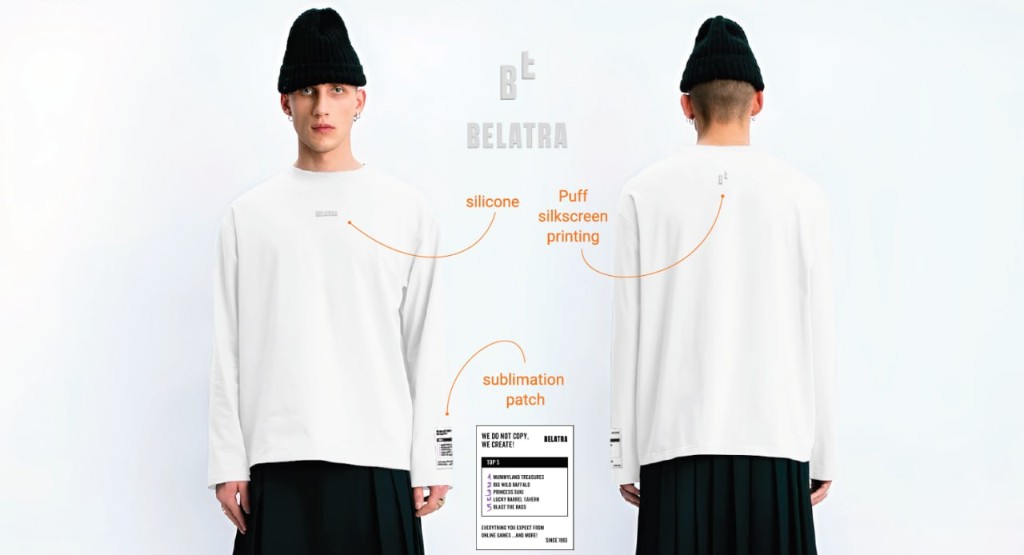 - Items produced: 100 long sleeves (50+50 color variants), 50 hoodies, 200 t-shirts, 300 socks, and removable accessories