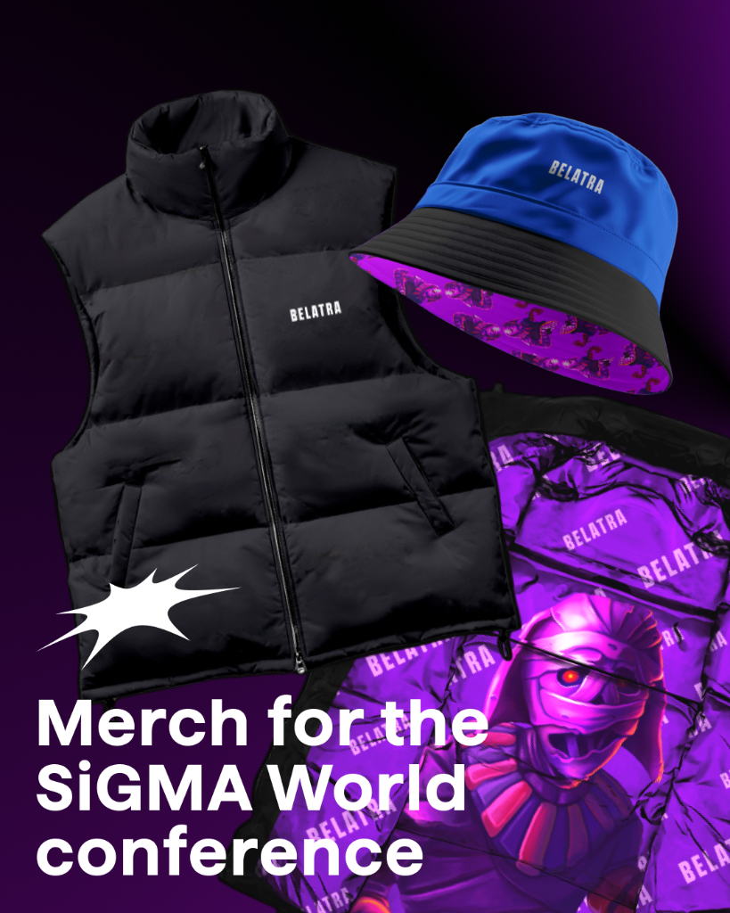 For our long-term partner Belatra Games, we crafted a targeted collection for SiGMA Europe in Lisbon. The strategy was "classic base, standout feature." We built the line on a foundation of versatile, laconic items in a sophisticated black, white, and purple color scheme.The true magic was brought to life using advanced techniques: